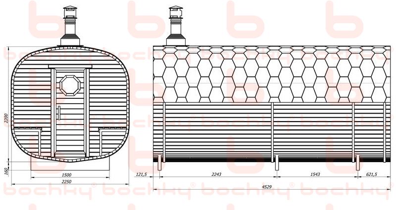 В базовой комплектации. Grill’D Bochky Short с внутренней топкой. Загрузка - 40 кг камней. Сталь повышенной прочности